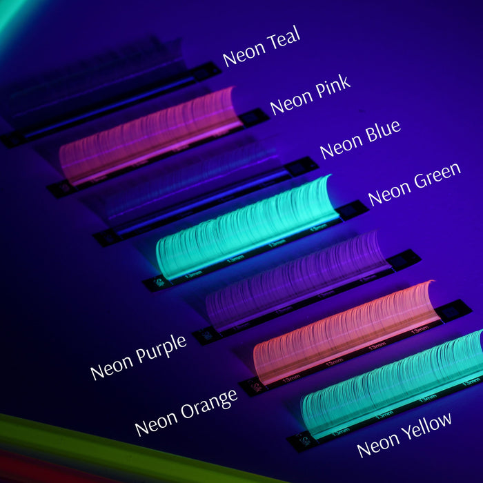 Bold neon lashes in 0.05 - vibrant color with select UV glow for standout styling.