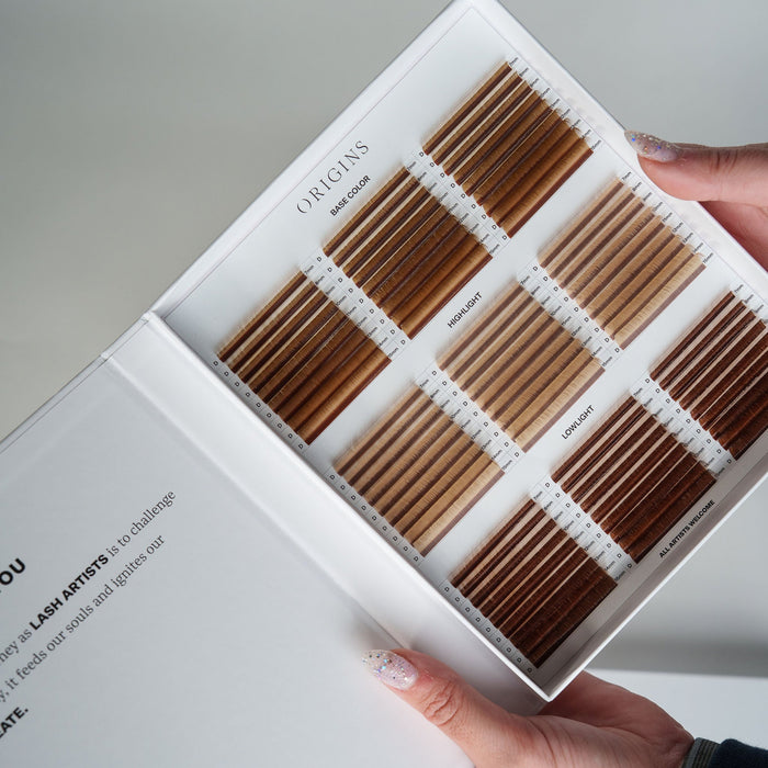 XXL trays with highlight, lowlight, and base tones - designed for seamless hair color matching and fully customized lash sets.